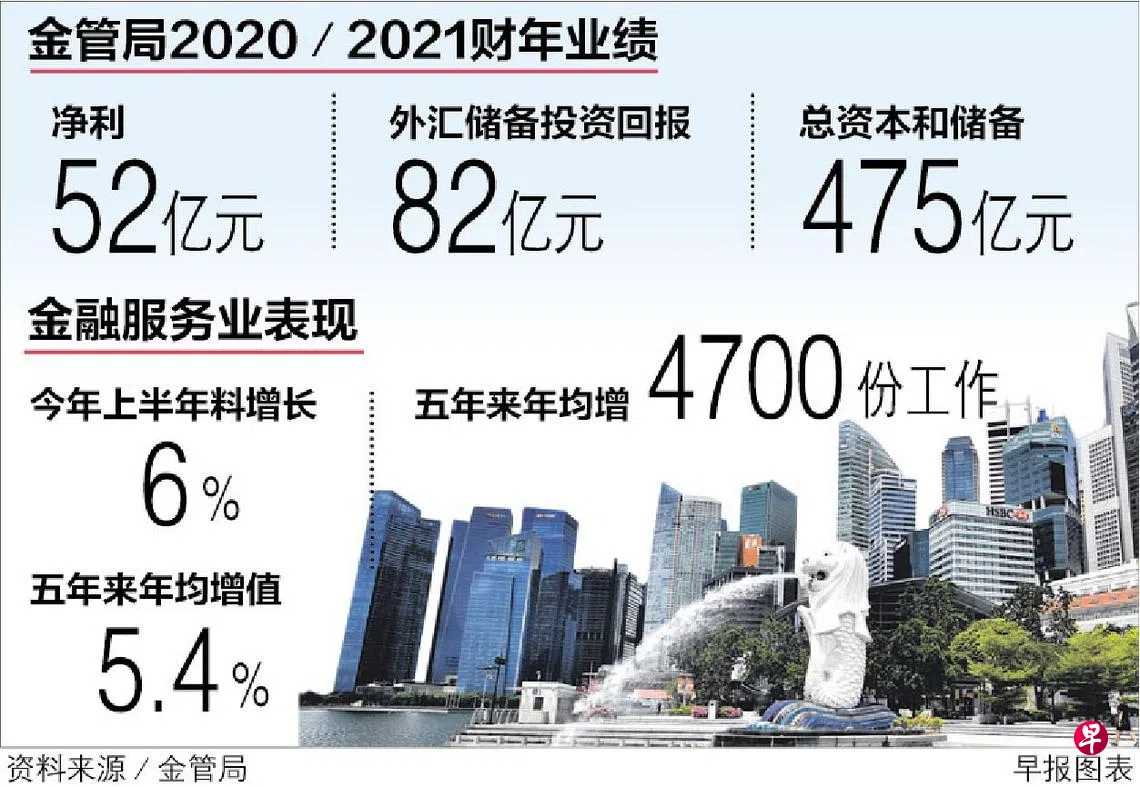 新加坡金融管理局在2020/2021年取得52亿元净利,较前一财年所取得的106亿万元净利少了50.9%。