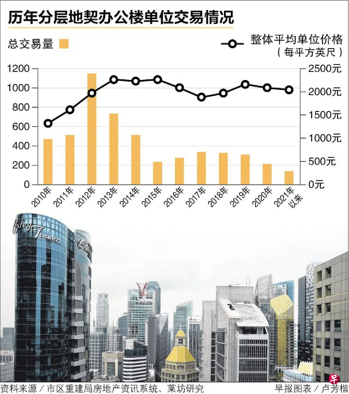 尽管去年暴发的冠病疫情造成市场环境显得悲观与谨慎,但本地分层地契办公楼市场保持韧性,去年的平均价格同比下跌3.2%至每平方英尺2093元,而今年以来售价仅比去年全年微跌2.5%,报每平方英尺2046元。