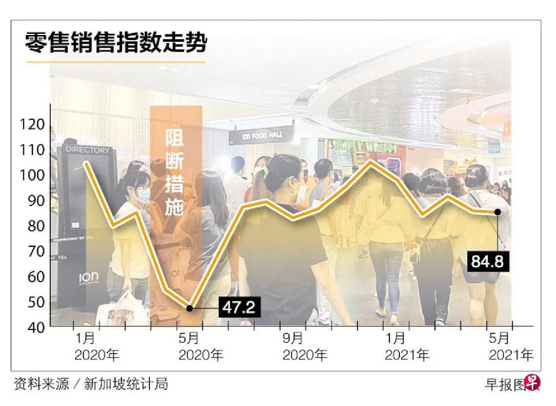 华侨银行经济师林秀心接受《联合早报》访问时表示,去年5月的冠病阻断措施促使零售销售跌入谷底,当时同比下挫51.65%。