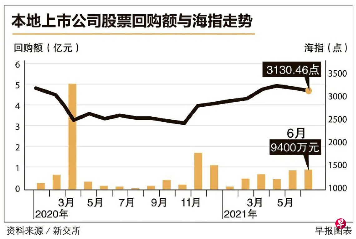 经济复苏促使市场回弹,本地上市公司降低回购股票的力度,今年上半年股票回购额同比锐减44.5%至3亿6800万元。