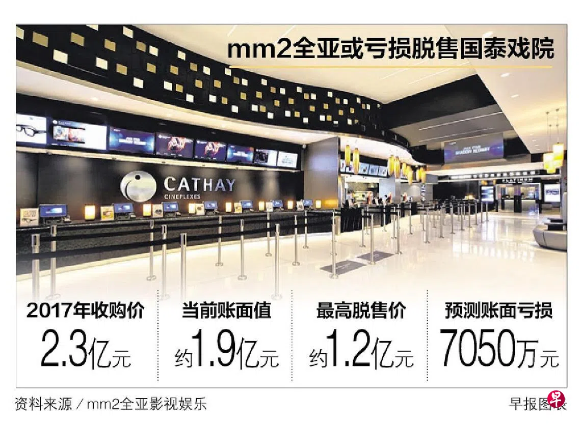 国泰戏院(Cathay Cineplexes)可能以7000多万元账面亏损脱售,四年内第二度易主。