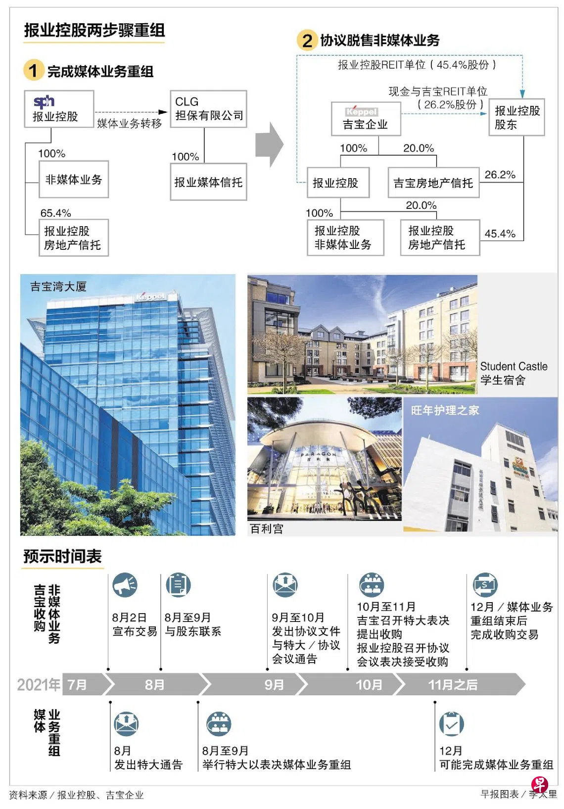 按照收购献议,吉宝企业将派发逾11亿元吉宝房地产信托单位给报业控股股东,这将把该信托公众持股率从54%提高到80%,集团将继续持股约20%。