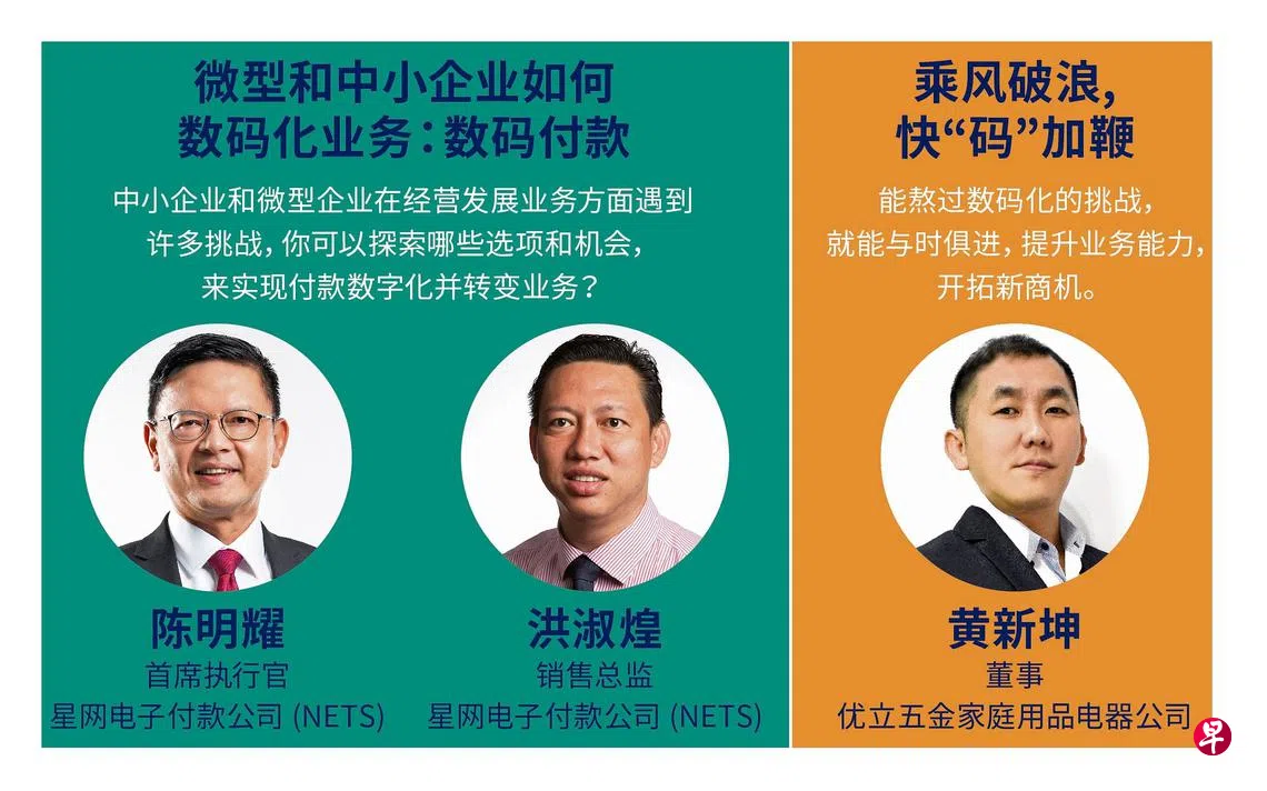 陈明耀是讲者之一,他和NETS销售总监洪淑煌将说明中小企业和微型企业在发展业务方面碰到的许多挑战,并探讨它们可以通过哪些选项和机会,来实现付款数码化及转变业务。