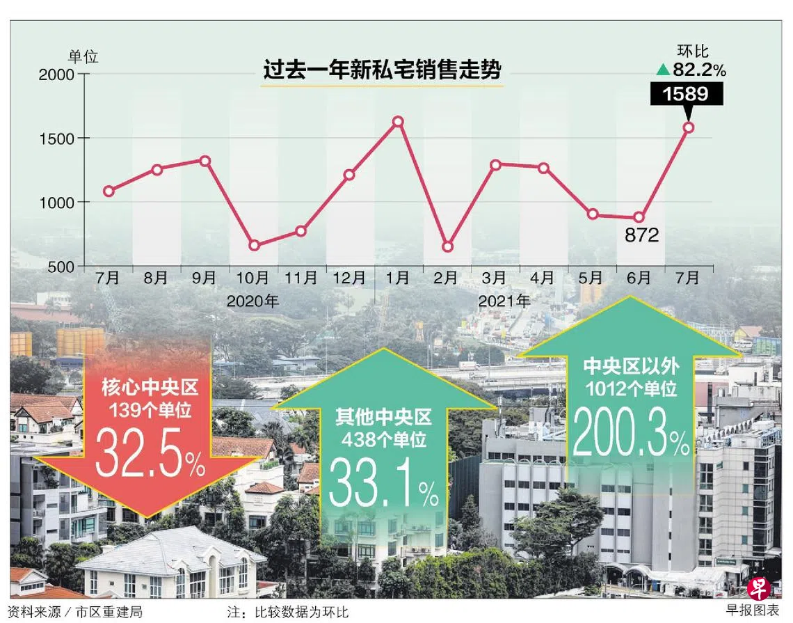 根据市区重建局发布的数据,若包括执行共管公寓在内,7月份共售出1744个单位,环比上扬81.3%,同比增长52.3%。各类私宅方面,若不包括EC在内,代表大众化私宅的中央区以外销量最大,占总数的63.7%。