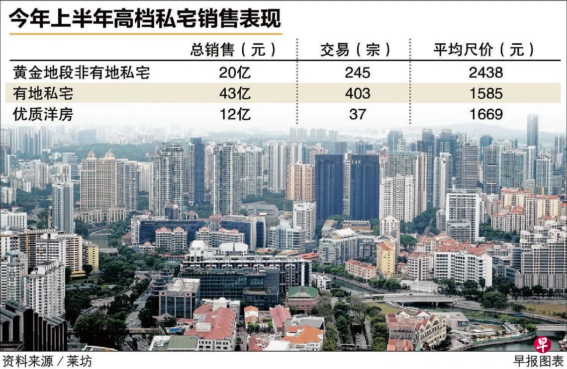 莱坊(Knight Frank)日前发布的上半年私宅市场报告显示,上半年共有245宗黄金地段的非有地私宅交易,平均每平方英尺价格为2438元。