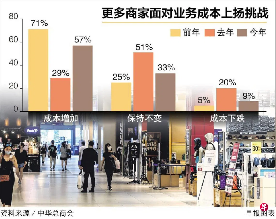 尽管本地企业正从冠病疫情影响中逐渐恢复,但仍面对业务成本上升的压力。新加坡中华总商会的最新调查显示,反映业务成本上升的商家比率从去年的29%上升至今年的57%。