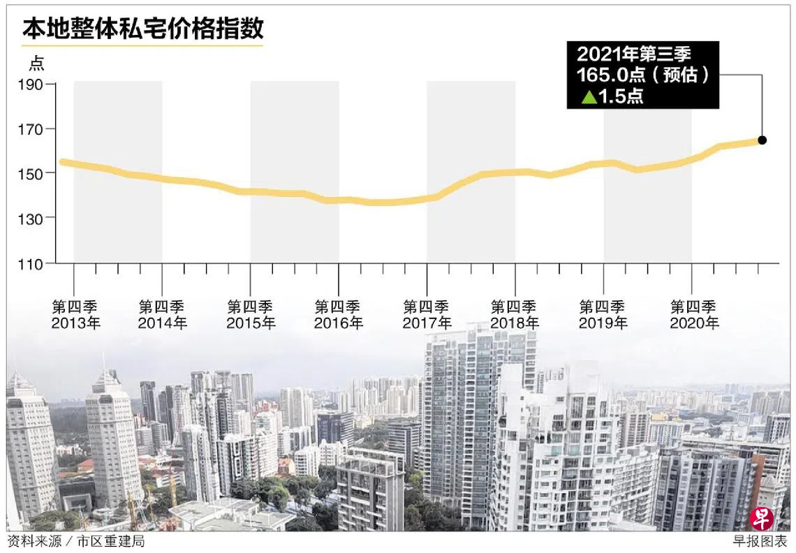 位于核心中央区(CCR)的非有地私宅价格,在上一季度上升了1.1%后回软,第三季略跌0.6%。其他中央区(RCR)的非有地私宅价格则上升2.2%,比前一季度的0.1%增幅显著。而位于中央区以外(OCR)的非有地私宅价格在上季上升1.9%之后,这一季则微跌0.2%。