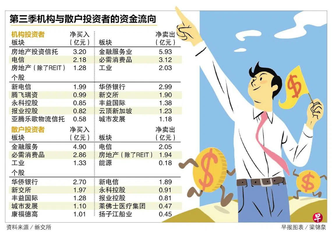 与上半年最青睐金融股相反 机构投资者第三季净买入最多REIT订户赠阅文章《联合早报》向新交所取得的数据显示,机构投资者在刚刚结束的第三季净买入REIT大约3亿2000万元,净卖出金融服务板块近5亿9260万元。吕爱丽 报道oilailai@sph.com.sg房地产投资信托新交所星狮物流工业信托腾飞瑞资华联商业信托升禧环球房地产投资信托投资理财上一篇居家照料时间变多 宠物用品疫中大卖 下一篇防疫措施收紧影响商场餐饮股 组屋区餐饮店股较具韧性购买此文章