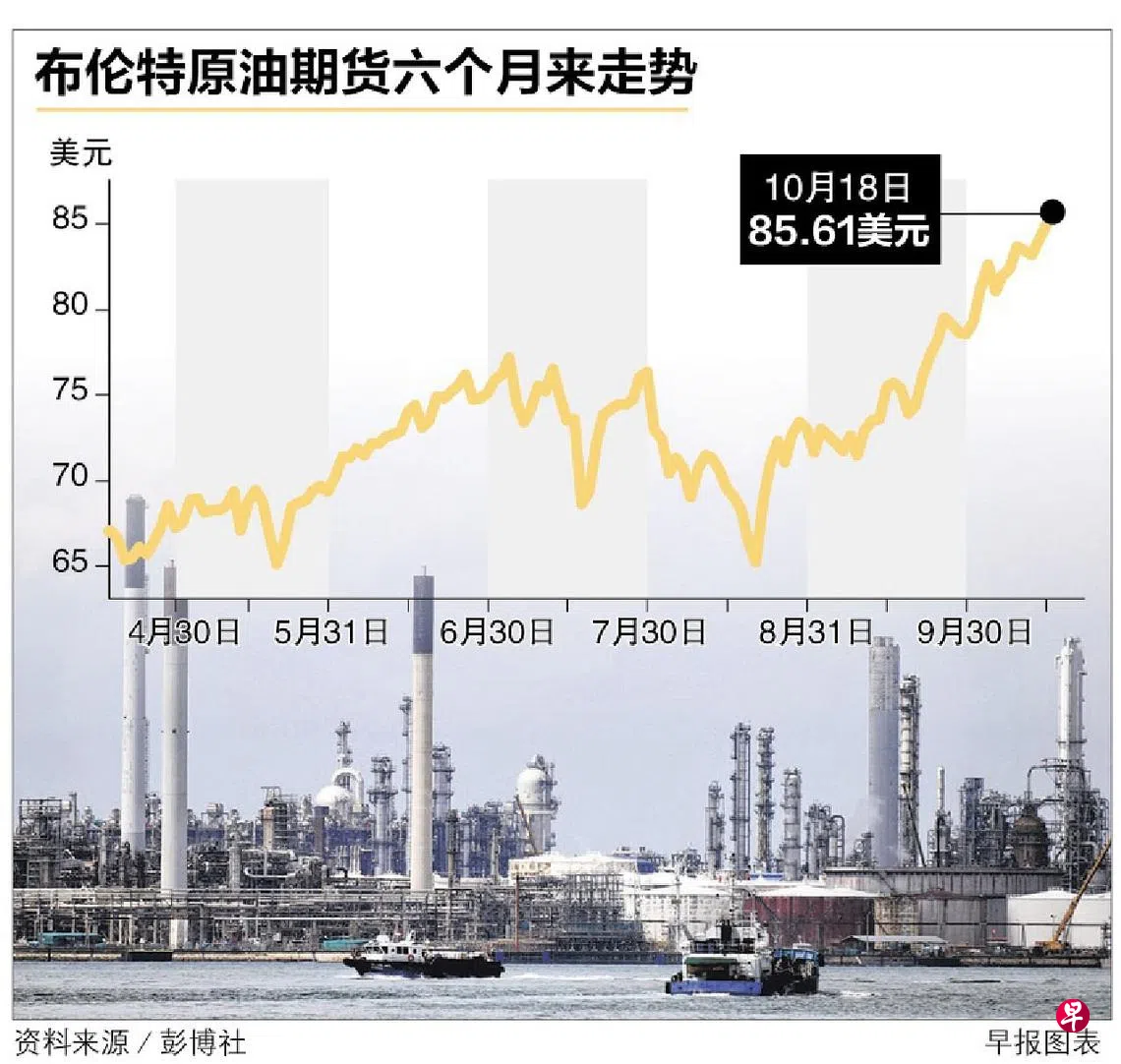布伦特(Brent)原油期货周一触及86.04美元的盘中高点,为2018年10月以来的最高价。