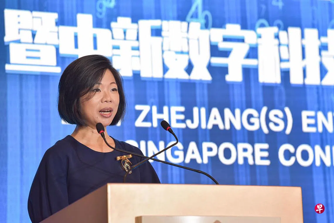 她指出,新加坡企业发展局(ESG)去年与浙江省商务厅签署备忘录,推动三个领域方面的合作,包括贸易与互联互通、创新与交流,以及可持续城市管理。另外,两地企业机构也签署八项合作备忘录。