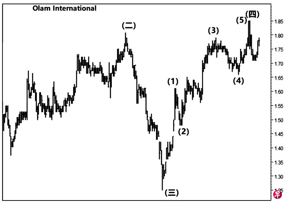 本栏于9月21日曾论及这只股票“斜向交叉”的第(三)点已经于今年7月28日的1.25元完成,过后迅速回升。8月16日股价上升至1.61元,由于升势甚急,造成介于1.46元与1.44元出现缺口。估计股价将继续其升势,且在突破1.81元的价位时,出现可观的升幅。当时股价为1.60元左右,见报当天股价略升至1.61元,9月22日股价骤然上升至1.71元,将介于1.67元与1.69元间的缺口填补,接着继续上升。10月11日股价上升至1.79元,并于当天以“转向”信号完成图中一个源自今年7月28日从1.25元以五波上升中的第(3)波。11月11日股价回扯至1.66元,此为第(4)波。股价过后继续上升至11月25日的1.85元,26日再试此价位未果,遂于当天以“主要转向”信号结束了第(5)波,同时也为上述“斜向交叉”中的第(四)点画下句号。估计股价可能出现调整,或将回扯至1.55元的价位以完成第(五)点,过后重返升势,至于能否填补上述第一个缺口则难以逆料。
