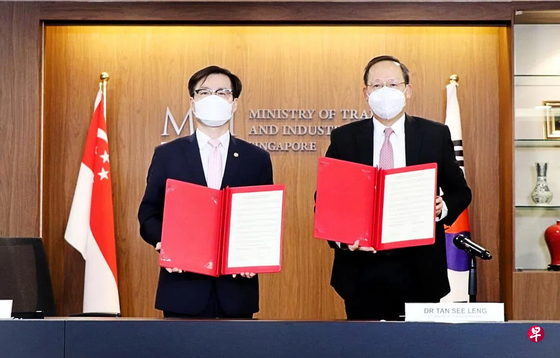 新加坡韩国完成数码经济协定谈判订户赠阅文章人力部长兼贸工部第二部长陈诗龙医生(右)和韩国贸易部长呂翰九在联合部长级会议上,共同宣布两国完成韩国-新加坡数码伙伴关系协定谈判。(贸工部提供)周文龙 报道chewbl@sph.com.sg新加坡和韩国已完成数码经济协定谈判,让两国之间的数据流动更加无缝,并为企业和消费者建立可信和安全的数码环境。陈诗龙医生上一篇采纳标准有助制造业稳健增长下一篇11月新私宅销量 环比增加近七成购买此文章