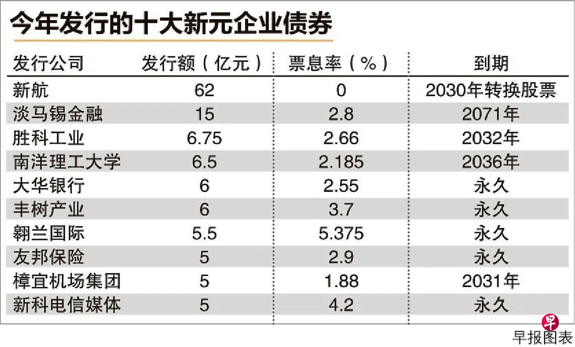 企业把握低利率时机发行债券,今年本地市场共有251亿元的新元企业债券发行,是五年来最高水平,当中多以长期和永久债券为主。