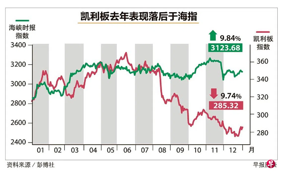 逆转2020年涨势 凯利板指数去年跌9.74%订户赠阅文章富时海峡时报凯利板指数在2021年下跌9.74%,逆转2020年的16.05%涨幅,表现也落后于新加坡海峡时报指数。凯利板指数在去年最后一个交易日以285.32点挂收,全年下跌9.74%。海峡时报指数则上涨9.84%,收报3123.68点。由此可见,凯利版股票的表现不如海指。富时海峡时报凯利板指数追踪凯利板的表现,由约200只股票组成。凯利板海峡时报指数股价投资理财上一篇经济料逐步复苏 银行及经济重开股虎年有望发威下一篇国际贸易谁主浮沉购买此文章