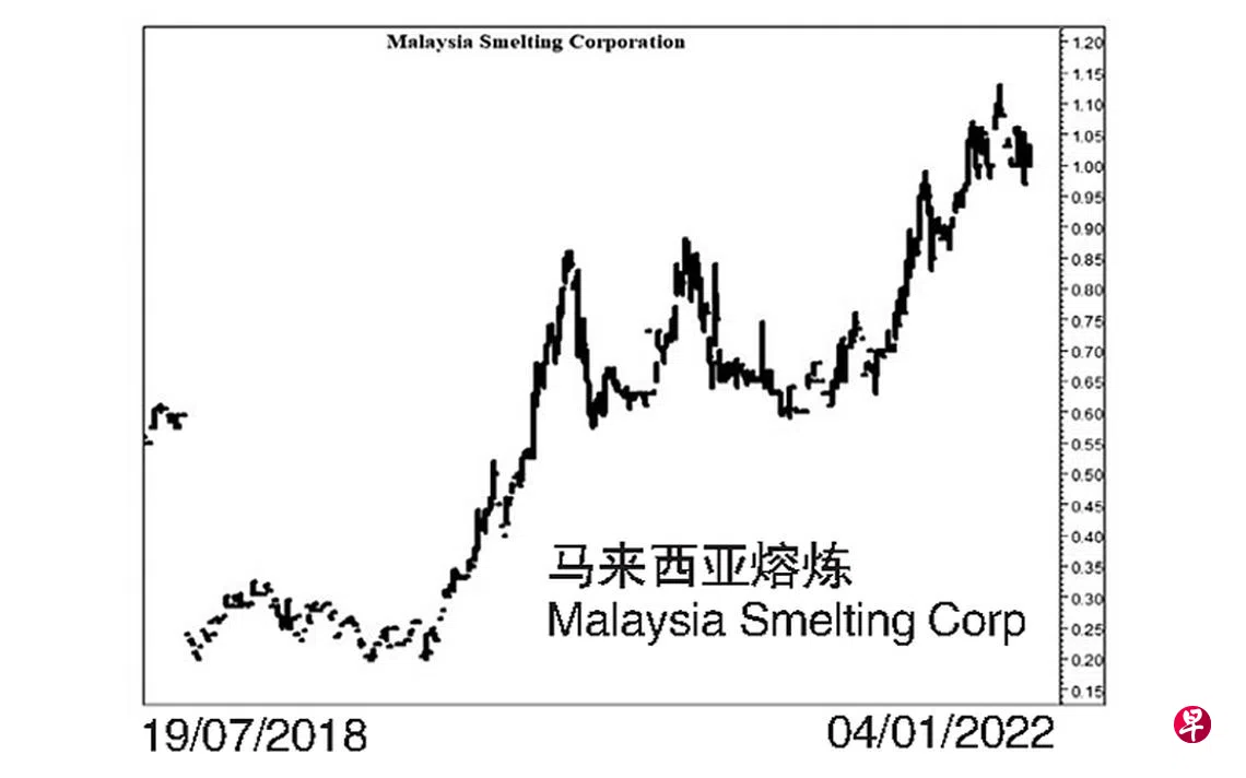 本栏于去年9月29日曾论及这只股票当时正处c波下调,将填补介于0.61元与0.60元间的缺口,一旦完成c波,股价将重返升势,而填补介于0.70元与0.745元间的缺口也就水到渠成。当时股价为0.70元左右。可是股价并没有立即下调而是继续上升,10月11日股价骤然上升至0.76元,遂将上述第二个缺口填补,同时也在介于0.72元与0.70元将留下缺口。10月22日股价再度跳空上升至0.95元,又在介于0.88元与0.86元间留下缺口。10月26日股价上升至0.99元,过后迅速滑落,28日股价一度下试0.83元,随即将此缺口填补,接着一路挺升。12月8日股价上升至1.08元,由于升势特急,造成介于1.06元与1.00元间留下缺口,截至12月10日股价已经上升至1.13元,过后渐渐滑落;12月20日股价回落至1.00元,旋将此缺口填补。由于股价自去年2月26日的0.71元上升至12月10日的1.13元,期间“动力”信号却从6.07054下跌至1.93628处,意味着调整即将开始,填补介于0.925元与0.915元,介于0.865元与0.85元及介于0.79元与0.76元间的缺口也就指日可待了。