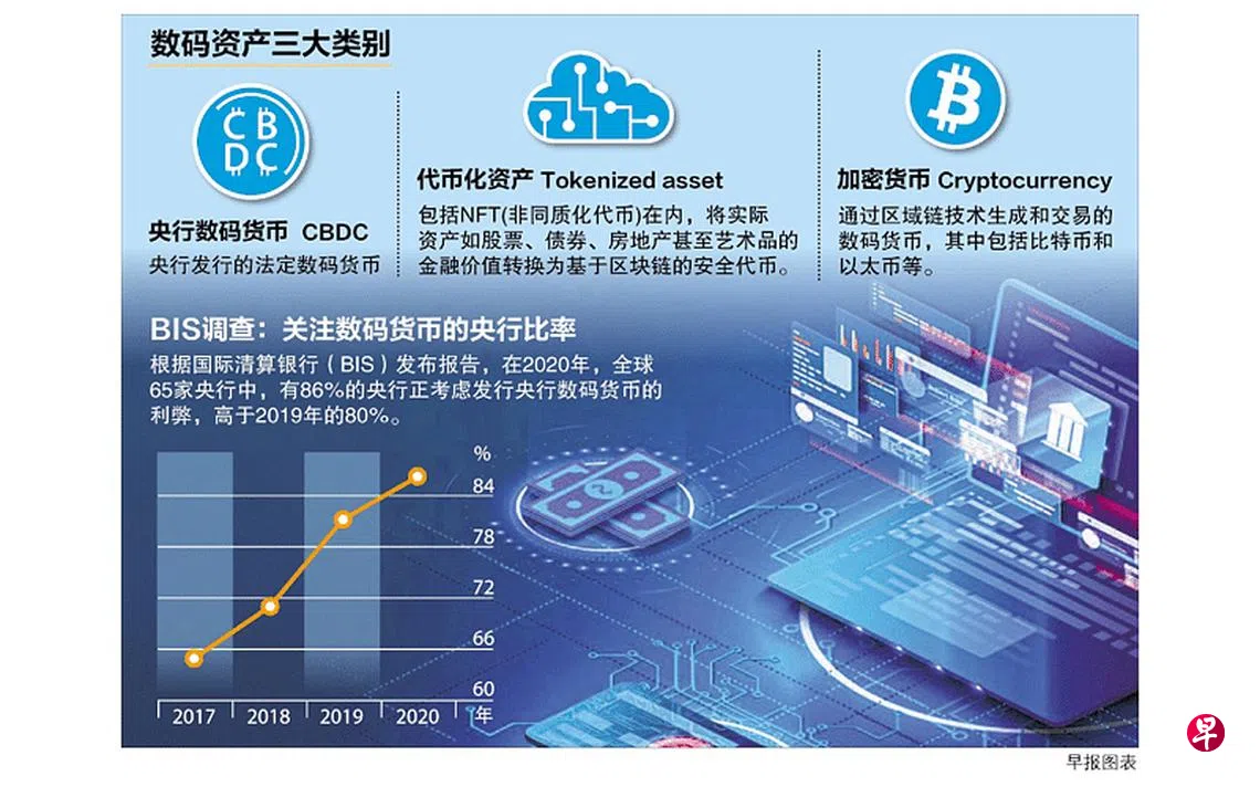 冠病疫情迫使数码化加速,加密货币随之呈爆发之势。在此背景下,央行数码货币(CBDC)、资产代币化(asset tokenisation)、非同质化代币(NFT)等数码资产也迅速崛起。