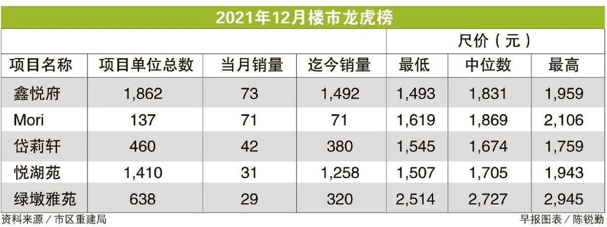 中档私宅最受欢迎 占据去年12月销量冠亚军