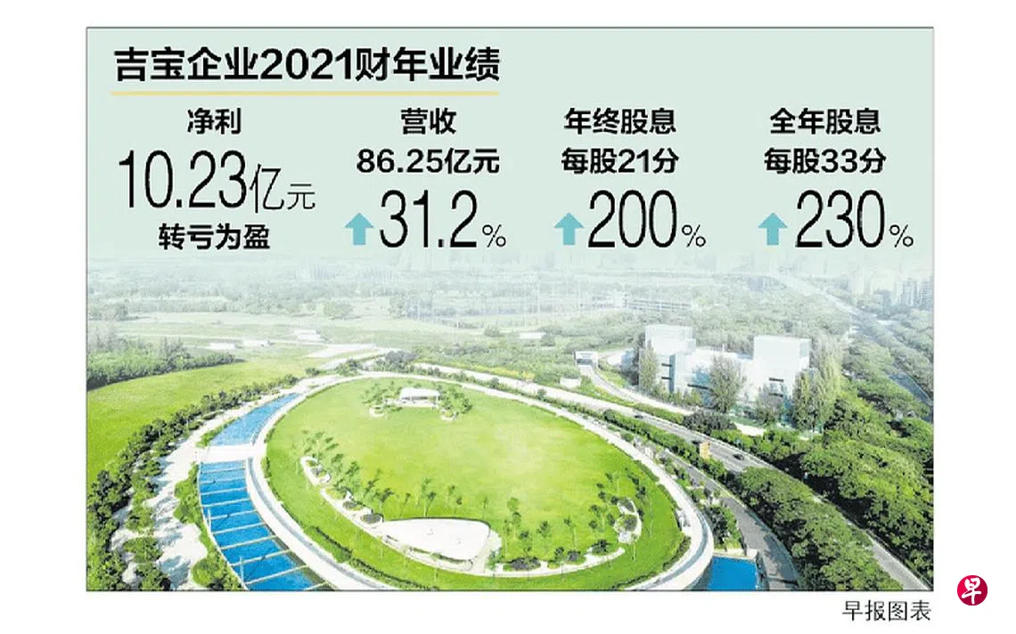 吉宝企业董事会建议在5月12日派发每股21分的年终股息,同比大增200%,股票注册截止日期是4月29日。全年股息因此达到每股33分,同比大增230%。