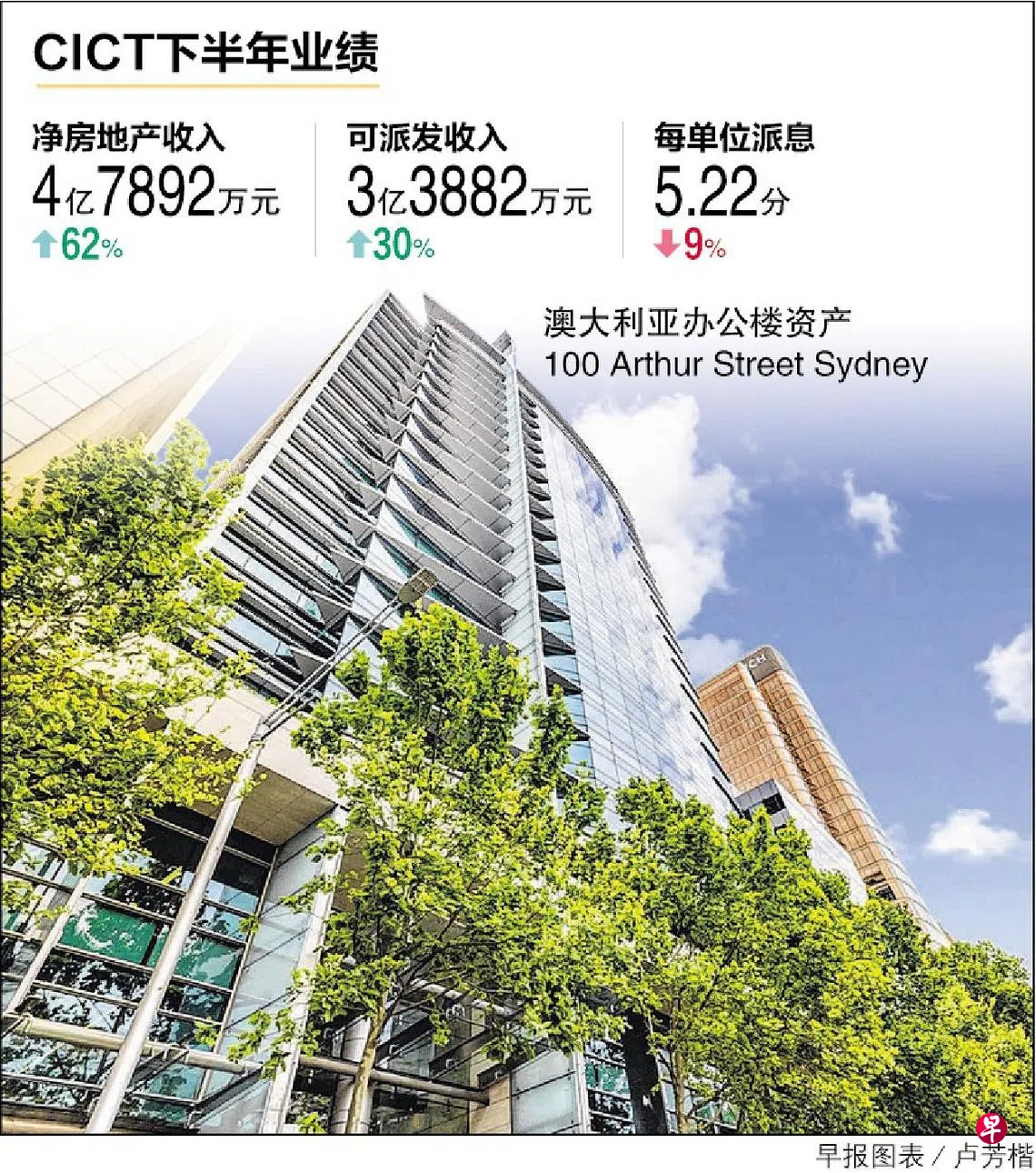 信托周五发布业绩,截至去年底的半年可派发收入增加30%至3亿3882万元,主要是因为与凯德商务产业信托(CapitaLand Commercial Trust,简称CCT)合并,以及新加坡来福士城(Raffles City Singapore)的全面贡献所带动。