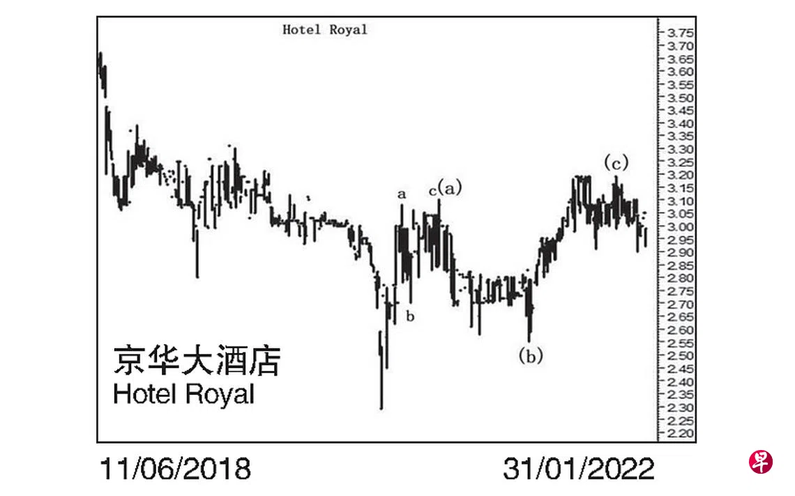 本栏于2020年4月9日曾论及这只股票三波回扯中的(a)波已经在2020年3月24日的2.77元完成,一旦(b)波结束,股价才可能进入(c)波升势。当时股价为2.70元左右。实际上,股价过后继续上升,而此(a)波又具三细波。同年4月30日股价上升至3.08元完成了左图中的a细波,过后回扯至5月18日的2.70元,此为b细波。同年7月24日股价上升至3.10元结束了c细波,同时于其每月一杆图以“主要转向”信号为(a)波画下句号,随后进入(b)波回扯。2021年3月11日股价下探2.55元,并于当天以“主要转向”信号完成了(b)波,过后又于其每月一杆图以“主要转向”信号带领股价进入(c)波升势。同年7月14日股价上升至3.19元,接着于8月5日、6日、13日、20日、24日及30日前后共七次试此价位未果。11月8日股价再试3.19元,且于当天以“主要转向”信号结束了(c)波,遂进入调整。截至今年元月5日股价已经下试3.04元,估计填补介于2.77元与2.68元间的缺口,将是基本目标。