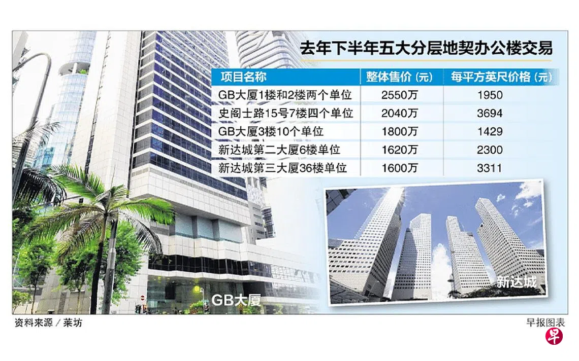 本地分层地契办公楼去年全年的总交易额,同比上扬近90%至12亿元,创下自2014年以来的新高。