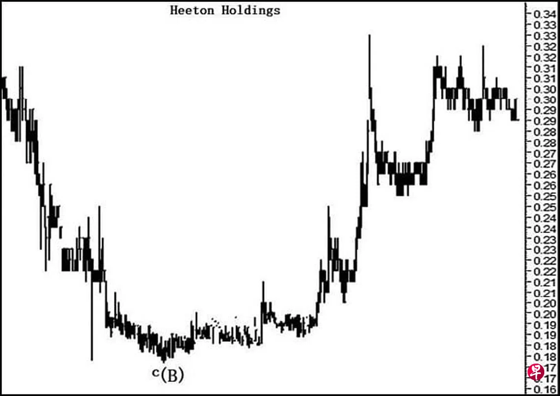 这只股票自2007年7月9日上升至0.645元,过后于其每周及每月一杆图皆以“转向”信号带领股价进入三大波下调。2008年11月6日股价下跌至0.082元,并于当天以“转向”信号完成了A大波,随即进入B大波回扯,而此B大波又具三波,其中(A)波又可分为三波。2010年4月22日股价上升至0.33元结束了(a)波,接着回扯至2011年10月4日的0.165元,旋于其每月一杆图以“转向”信号完成了(b)波。2014年4月25日股价上升至0.52元结束了(c)波,同时也为(A)波画下句号。2016年12月22日股价下试0.21元,且于其每周一杆图以“转向”信号完成了a波。2017年11月2日股价上升至0.41元,遂于其每周一杆图以“转向”信号结束了b波。2020年9月10日股价终于下试0.177元,并于当天以“主要转向”信号完成了c波,同时为(B)波画下句号,因此,估计股价目前正处(C)波回升,截至2021年8月6日股价已经上升至0.33元了,因此,填补介于0.34元与0.38元间的缺口也就水到渠成。