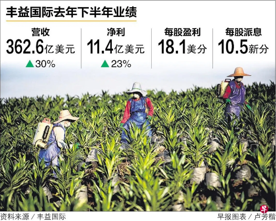 丰益国际(Wilmar International)去年下半年净利增加23.4%至11亿3948万美元(约15亿3500万新元),每股盈利为18.1美分。