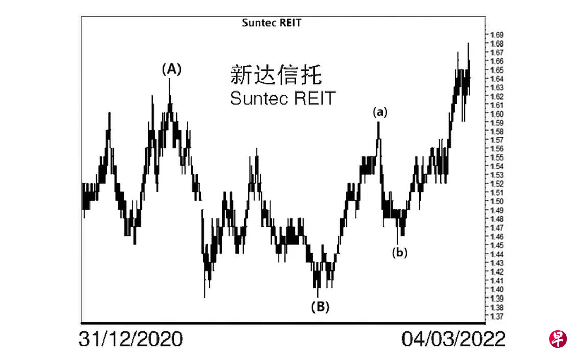 本栏于去年11月2日曾论及这只股票已经为(B)波画下句号。因此,估计股价当时已经进入(C)波升试,填补介于1.60元与1.61元的缺口也就顺理成章。当时股价为1.49元左右。果然,股价过后继续上升,11月8日股价升试1.55元,接着出现横摆走势,从11月9日至11月22日股价仅在1.55元及1.52元这狭小波幅中波动。11月24日股价上升至1.59元,次日,股价再试此价位未果,遂于当天以“转向”信号完成了图中的(a)波,随后以三波下调。11月30日股价下探1.47元结束了图中的a波,立即回扯至12月8日的1.51元,并于当天以“转向”信号完成了b波。12月15日股价下探1.45元,由于当天以“转向”信号结束了c波,同时为图中的(b)波画下句号,旋进入具三波的(c)波升势。截至3月3日股价已经升势1.68元,旋将上述第一个缺口填补。由于其每月一杆图中的“动力”信号已经上升至负号界域的0.24960,随时会穿上“中性线”而进入正号界域,迄时股价当升试1.90元的阻力线了。
