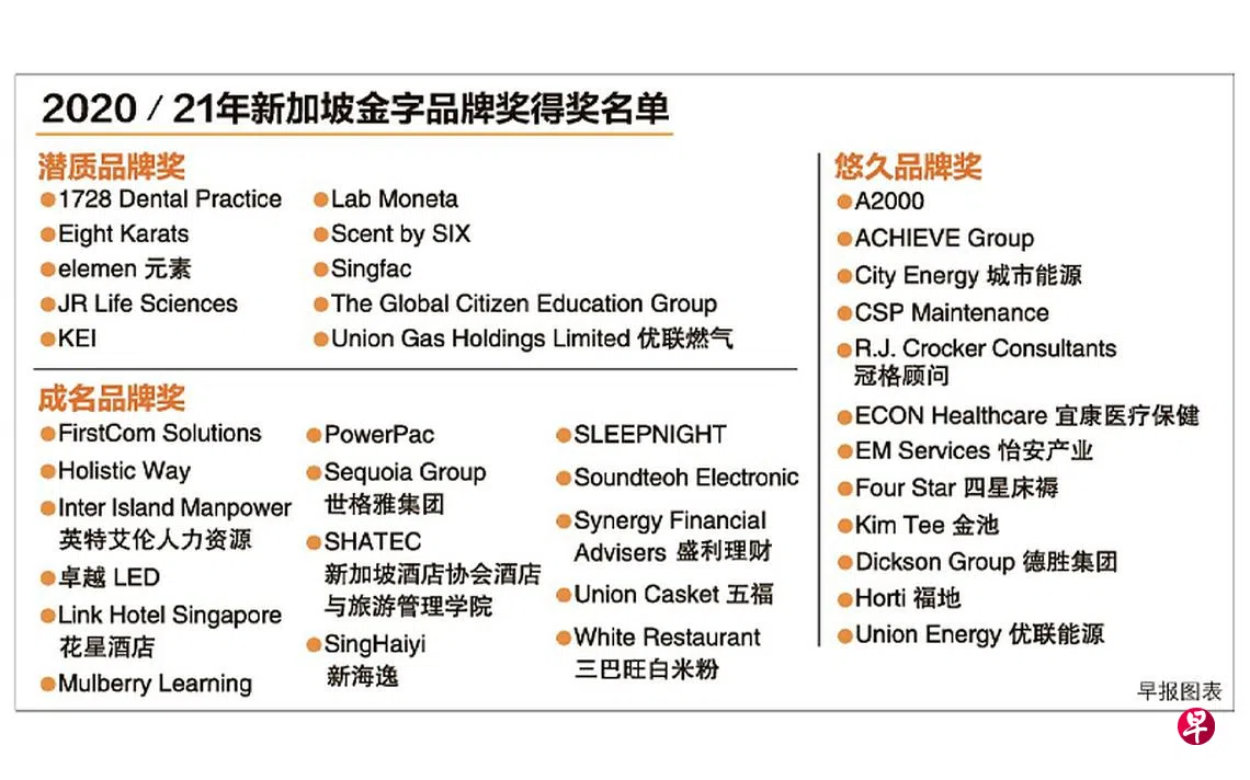 2020/21年新加坡金字品牌奖(SPBA)得奖名单已经出炉,共有37个来自不同行业的本地品牌获奖。