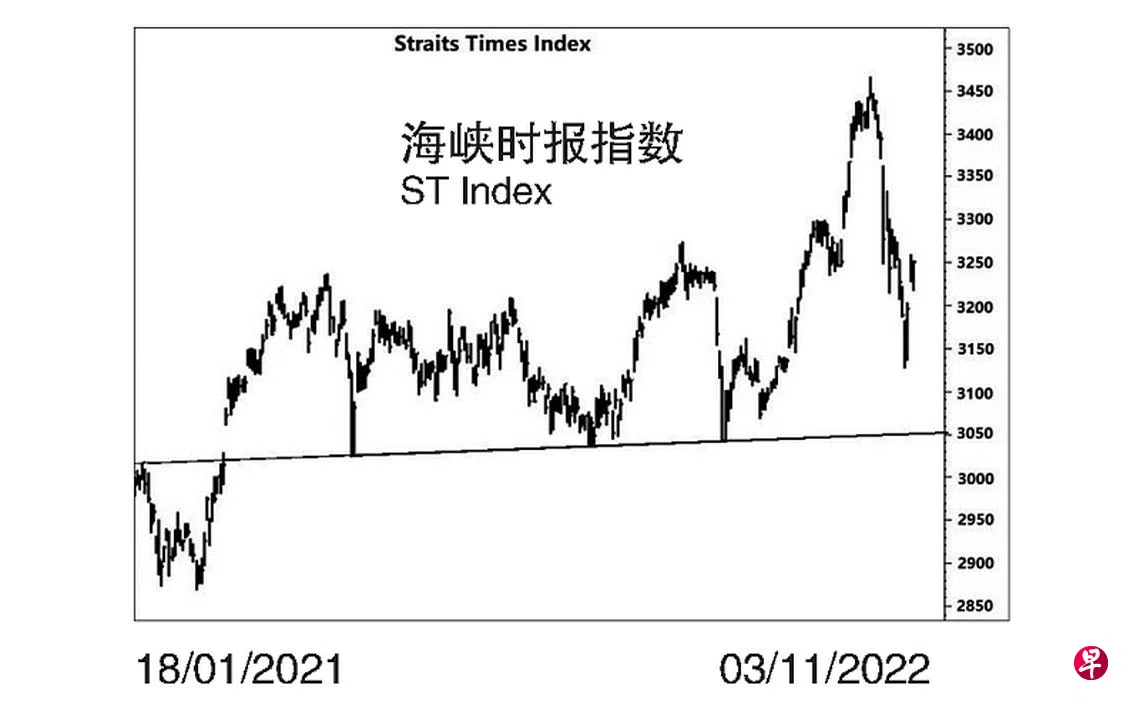本栏于上周一(7日)曾论及指数由于其“动力”信号在指数上升过程已经日渐式微。因此,填补介于3209.30点与3205.26点及介于3190.61点与3184.30点的缺口也就更为紧逼。当时指数为3226.78点左右。见报当天指数骤然下跌至3186.01点,随即将上述第一个缺口填补,同时也填补了第二个缺口的一部分;由于跌势甚急,造成介于3222.61点与3226.78点间出现缺口。8日指数更跳空直探3128.06点,旋将上述第二个缺口全予填补,同时又在介于3182.35点与3187.82点间留下缺口;9日指数极力反弹,并上升至3203.38点,随即将此缺口填补。10日指数再接再厉腾升至3258.94点,旋将上述第三个缺口填补,同时又在介于3227.61点与3195.38点间留下缺口;11日指数一度下试3217.56点,遂将此缺口的一部分填补。由于指数自2021年5月14日的3023.95点上升至同年11月9日的3273.54点,完成了上图“头肩形”的左肩。因此,估计指数短期内或将尝试回升以试一条位于3345.12点的中期阻力线,顺便完成其右肩,至于能否填补介于3363.17点与3371.99点间的缺口,这就难以逆料。