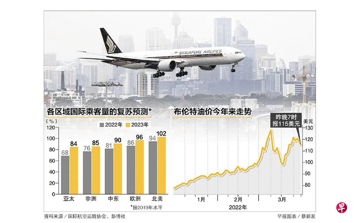 新加坡及区域国家进一步放宽边境管制,增强本地宇航股的复苏势头。不过有分析师担忧,油价走高可能冲击航空公司的盈利表现,居高不下的通货膨胀压力削弱市场需求。