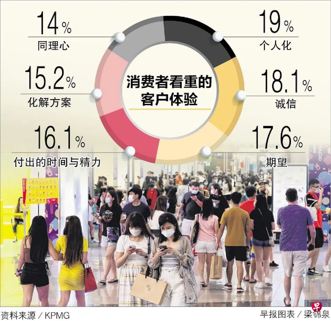 KPMG的一项调查报告指出,本地消费者看重的其他客户体验,依次是期望、付出的时间与精力、化解方案和同理心。重要的是,所有六项体验相互关联,商家因此必须能够很好地一并掌握。