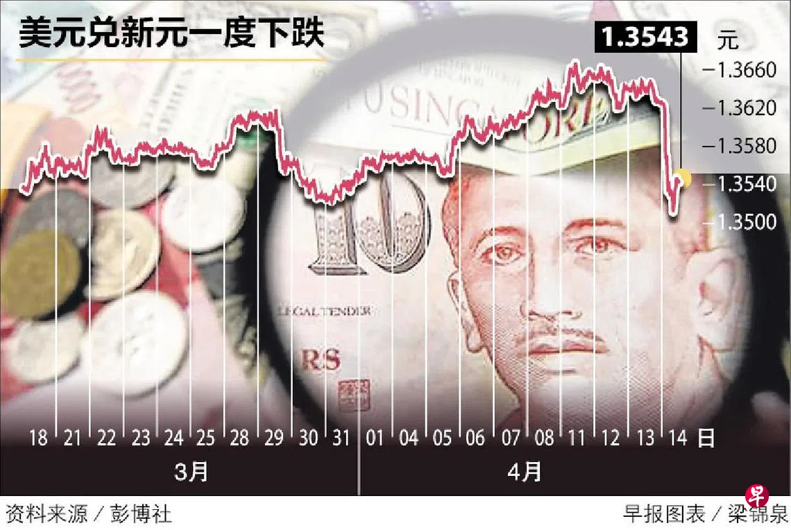金管局昨天发布半年一度的政策声明之后,美元兑新元从发布前的1.3610一度跌至1.3511。截至傍晚6时,美元兑新元报1.3541。