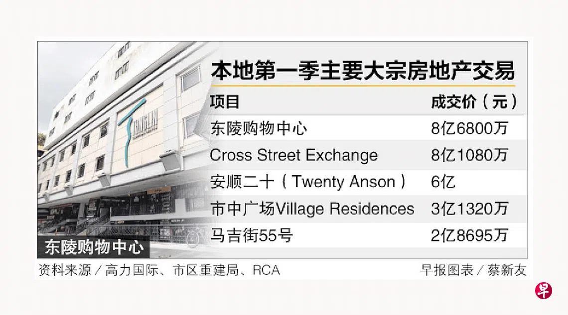 高力国际(Colliers)的报告显示,本地第一季大宗房地产销售额同比大涨103.9%至106亿元,环比也上扬34.4%。