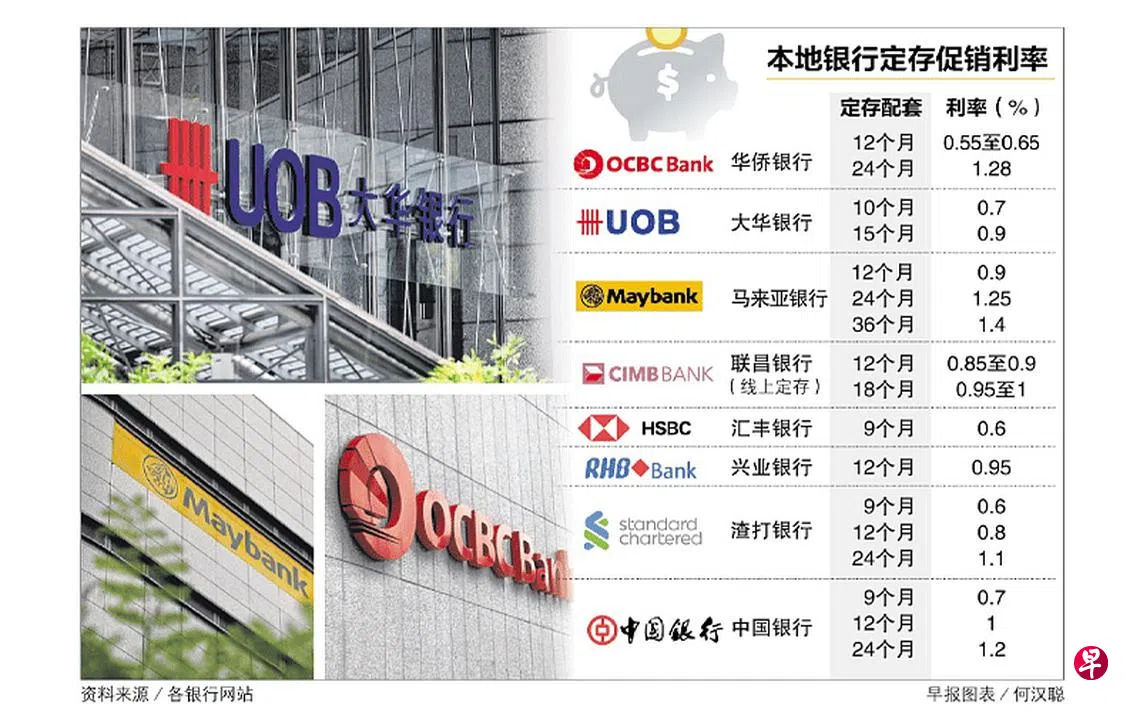 根据《联合早报》收集的资料,大华银行(UOB)的10个月定期存款促销利率从2月的0.5%调升至0.7%。