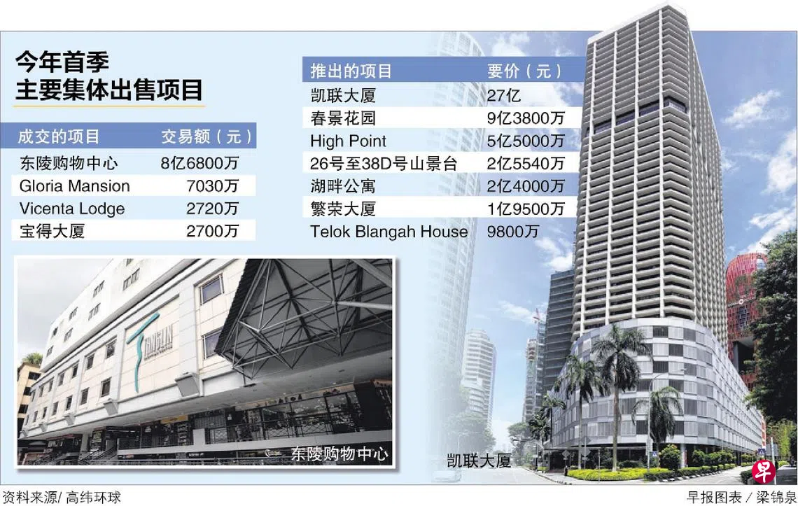 根据高纬环球(Cushman & Wakefield)提供给《联合早报》的数据,今年首三个月成交的集售项目增加两个。