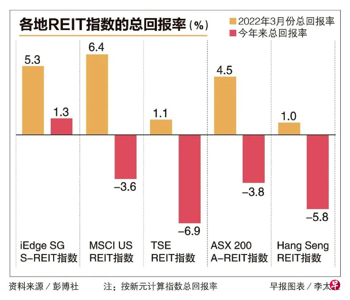 新加坡挂牌的房地产投资信托在2022年第一季的表现,超越全球各主要市场的挂牌房地产投资信托。