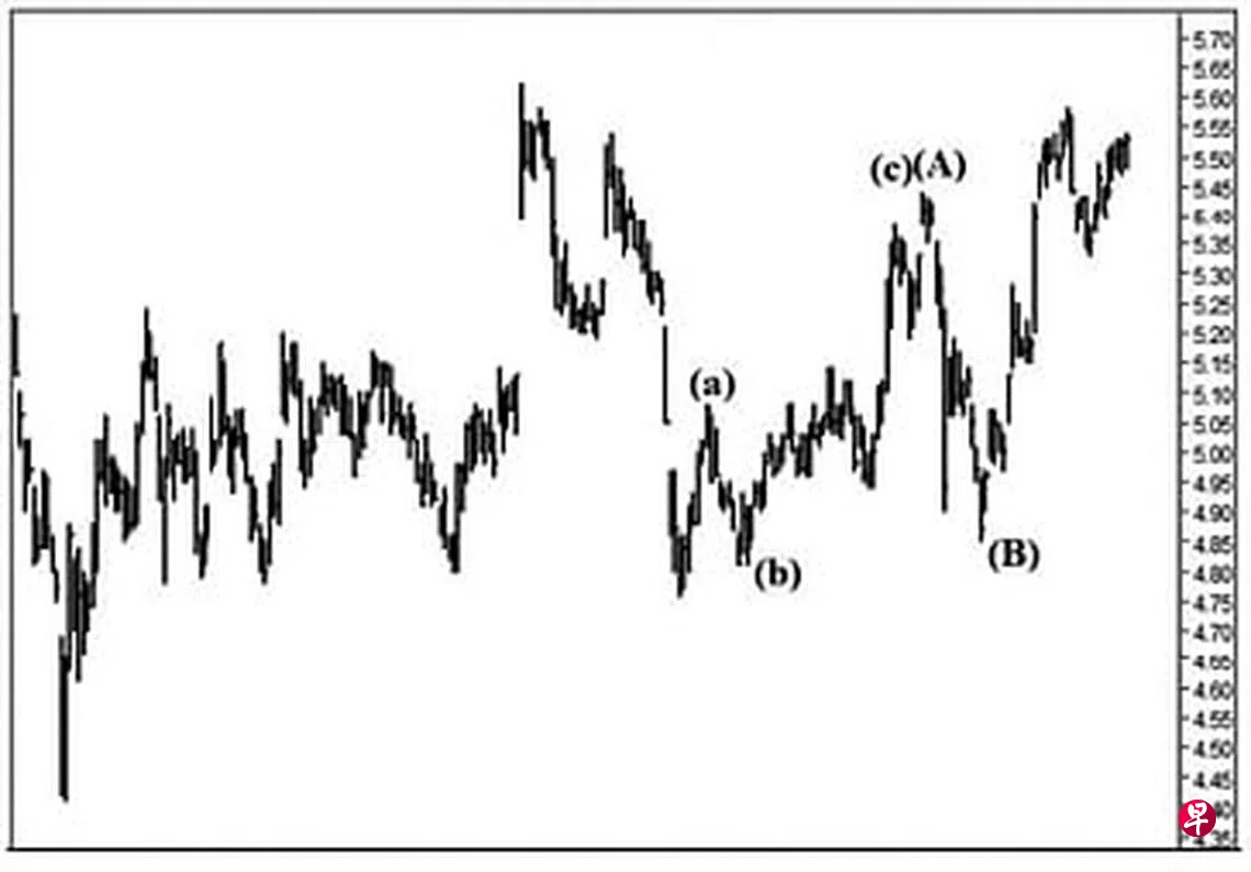 本栏于今年2月11日曾论及这只股票一旦穿上位于5.62元的阻力点,当扬长而去。当时股价为5.32元左右。2月17日股价骤然上升至5.44元完成了图中的(c)波,并为(A)波画下句号,同时在介于5.38元与5.33元间留下缺口;18日股价下跌至5.35元,随即将此缺口的一部分填补。2月22日股价跳空下试5.25元,又在介于5.35元与5.39元间留下缺口。24日股价急跌至4.90元,同时在介于5.24元与5.27元将留下缺口。25日股价回扯至5.16元,造成介于5.06元与4.94元间出现缺口。3月4日股价回落至5.01元,由于跌势甚骤,造成介于5.08元与5.12元间出现缺口。3月7日股价跳空下跌至4.95元,又在介于5.01元与5.05元间留下缺口,同时也将上述第四个缺口的一部分填补。8日股价再度跳空下探4.85元结束了(B)波,同时在介于4.96元与4.97元间留下缺口。3月17日股价骤升至5.28元,遂将上述第七、第六、第五及第三个缺口填补。截至4月5日股价已经上升至5.58元,估计升势当持续,填补介于6.17元与6.21元的缺口指日可待。
