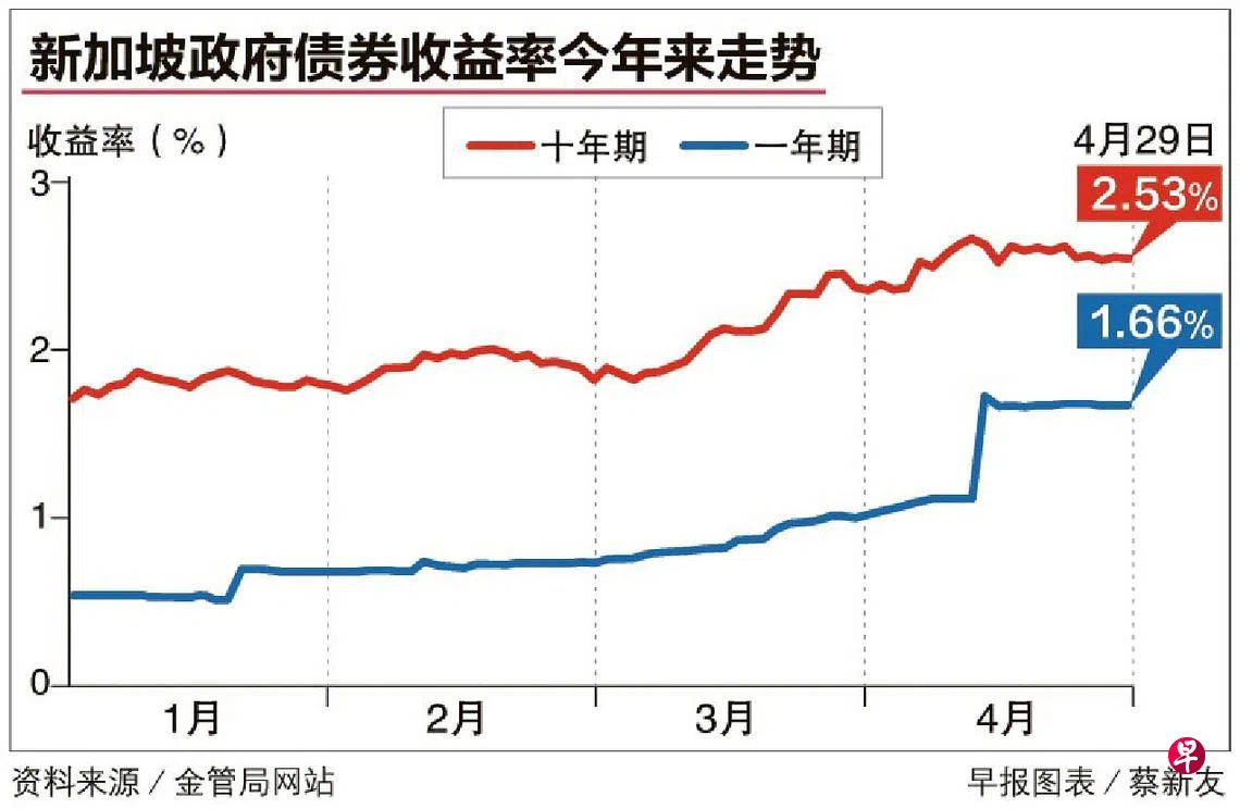 在全球加息的大环境下,债券收益率节节攀升,下个月发行的新加坡储蓄债券10年平均利率,预料可达到2.5%,是三年多来的最高水平。