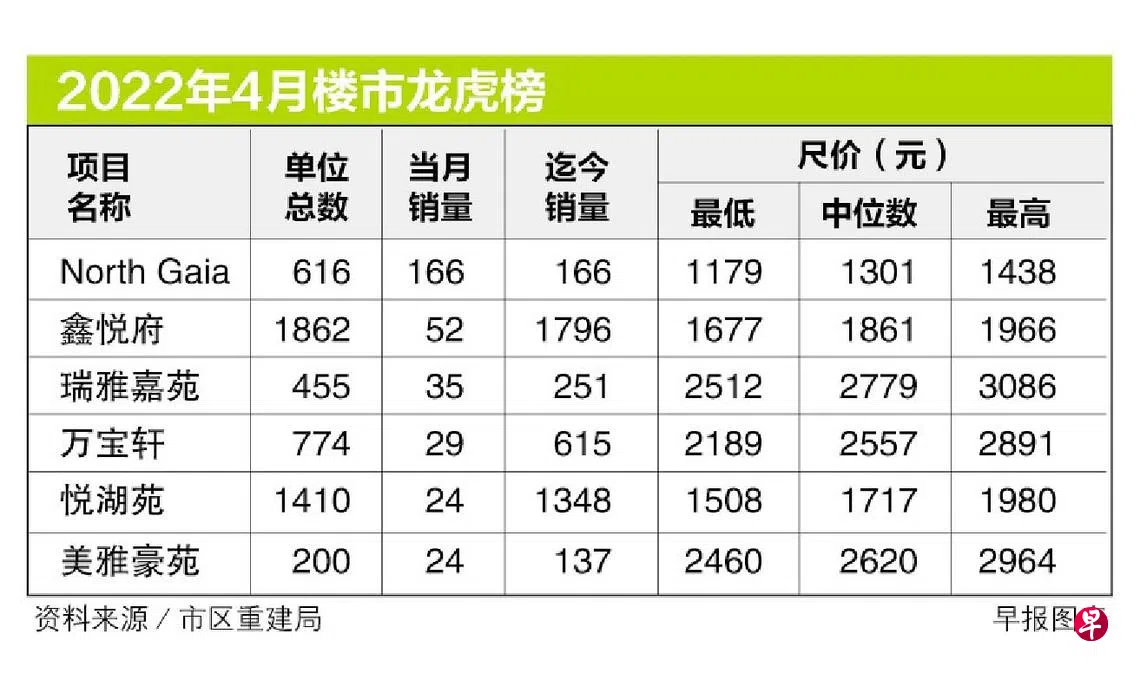 后港一带的悦湖苑及东海岸的美雅豪苑上月同样售出24个单位,排名第五。