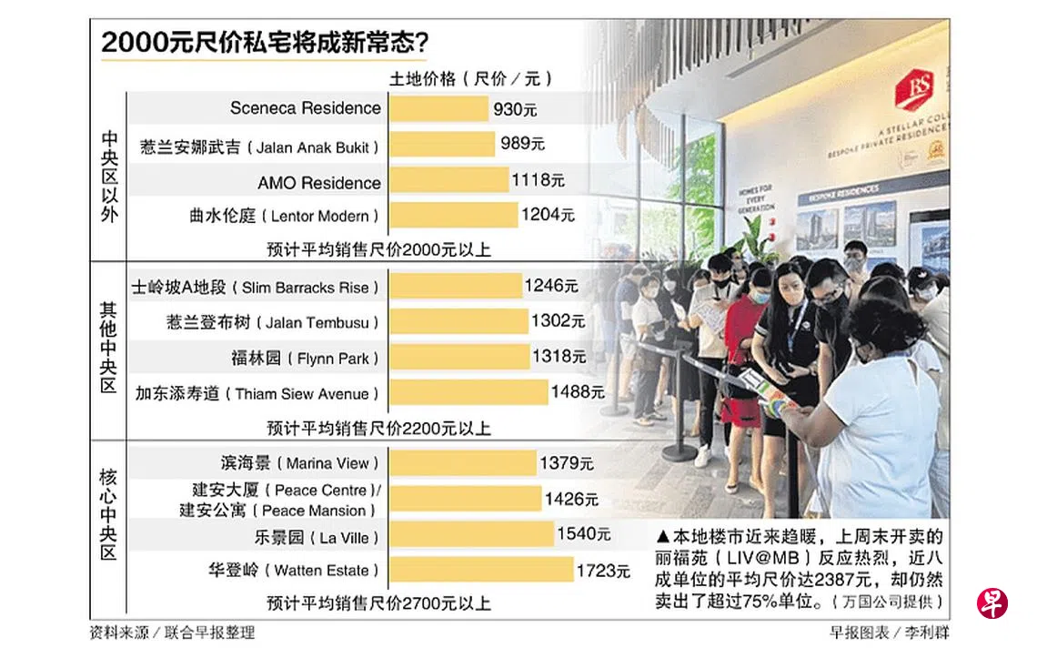 在强劲市场需求的推动下,本地新私宅价格节节攀升,两个新推出项目销售尺价均超过2000元,却依然吸引许多买家。