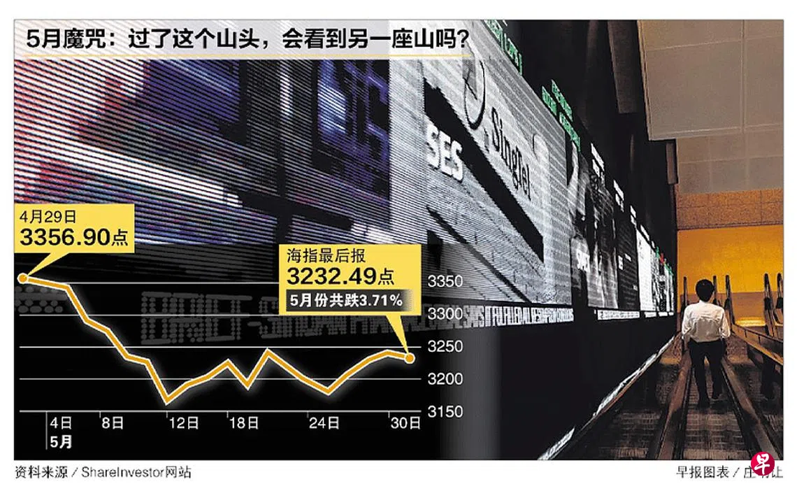 新加坡海峡时报指数在5月份共跌124.41点或3.71%,是今年来海指最大的单月跌幅,应验了股市“5月魔咒”或“五月清仓离场”的说法,而且在本区域主要股市当中海指的5月表现垫底。展望6月的股市,分析师认为市场仍将关注通货膨胀、美国央行加息速度,以及中国放宽防疫措施的进度这三大因素。