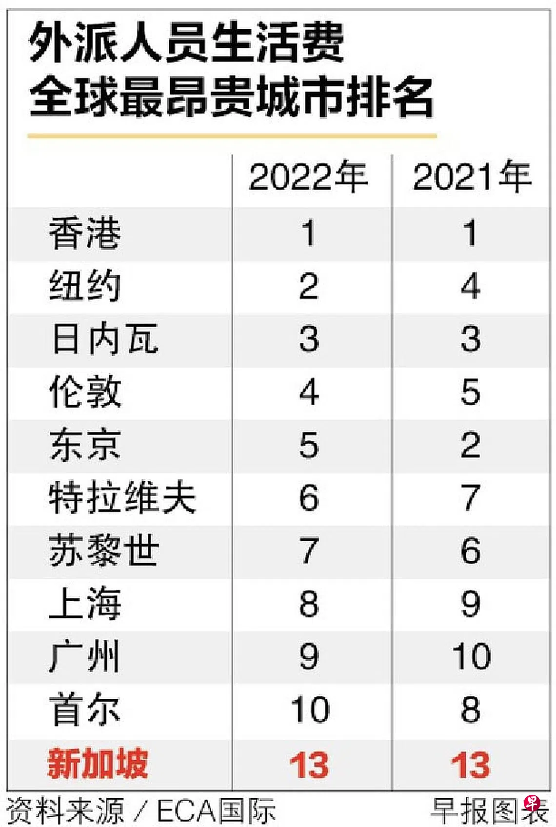 我国今年在“外派人员生活费最昂贵城市排行榜”的排名继续位居全球第13,香港依然高居榜首,东京和首尔排名下滑至第五和第10,上海和广州排名上升至第八和第九。