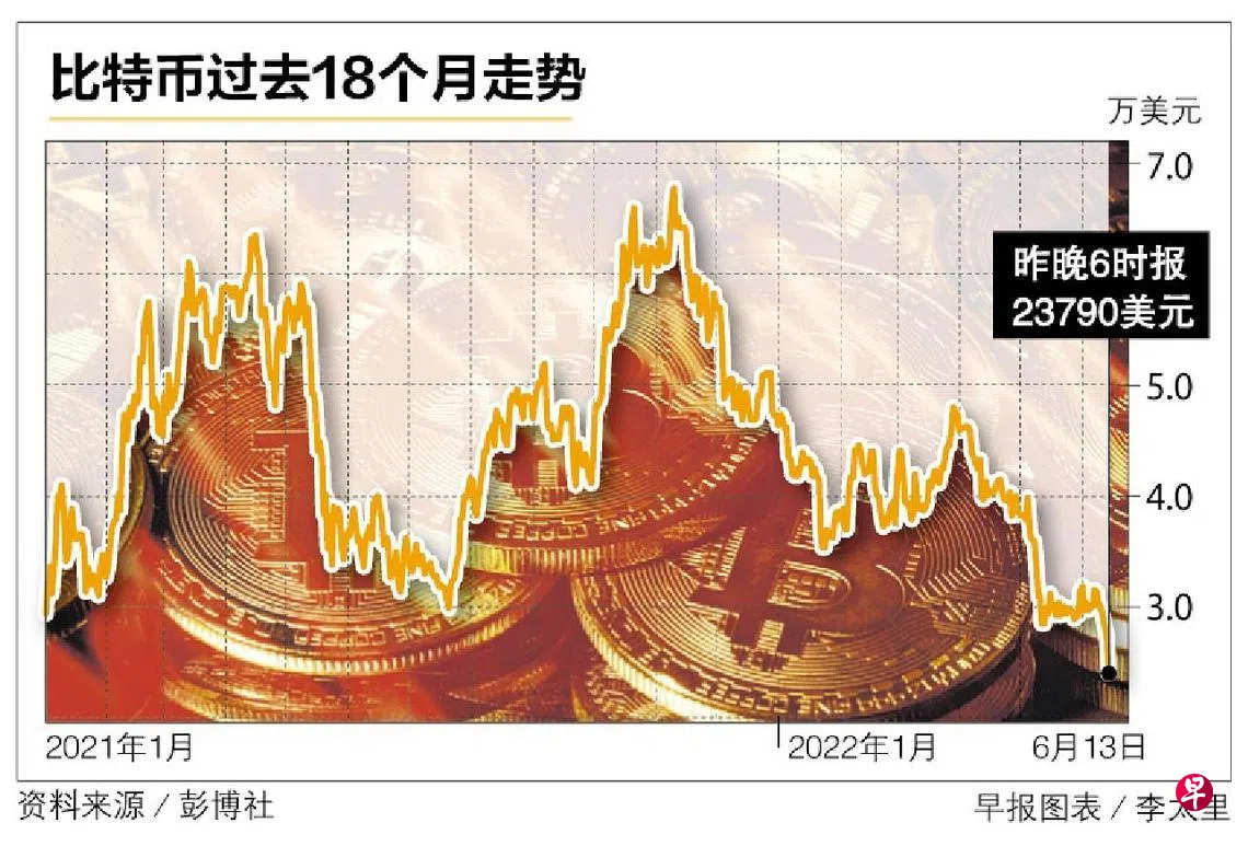 市场担忧美国联邦储备局可能激进加息以遏制通胀,全球风险资产面对抛售压力,投资者的紧张情绪从股市蔓延至加密货币市场,市值最大的比特币昨日跌破2万5000美元水平,创18个月来新低。