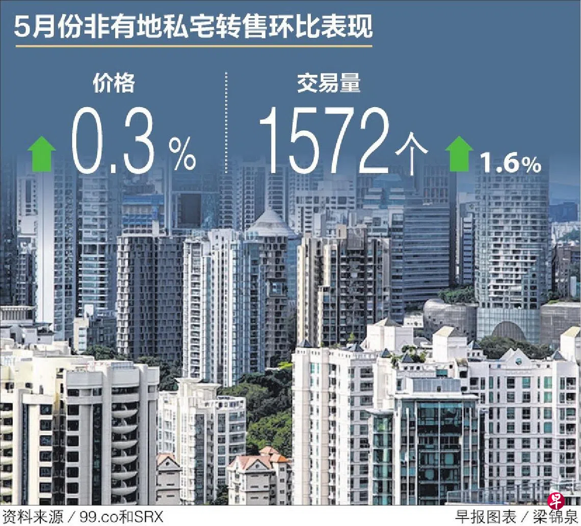 市场供应有限,加上边境和安全距离措施放宽促使更多买家回流,5月份非有地私宅转售价连续22个月上扬,环比上扬0.3%,但涨幅低于上个月的0.8%。