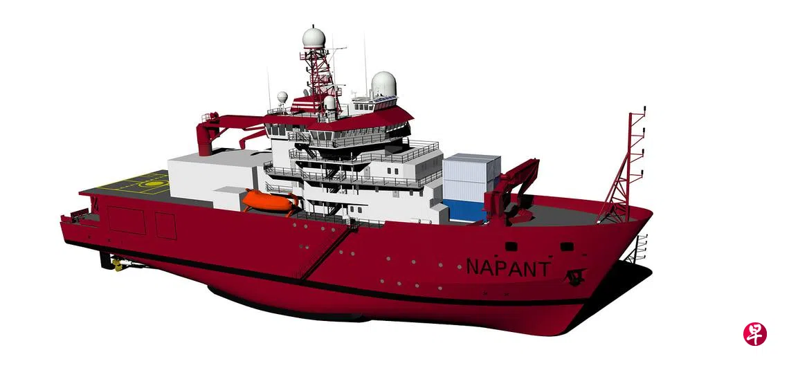 根据合约,胜科海事将为巴西海军新建一艘支援船NApAnt,在南极洲进行科学研究。这艘船的长度93.9米、宽度18.5米、重约5800公吨、吃水6米,将按照导航冰原标准(P-6)建造。