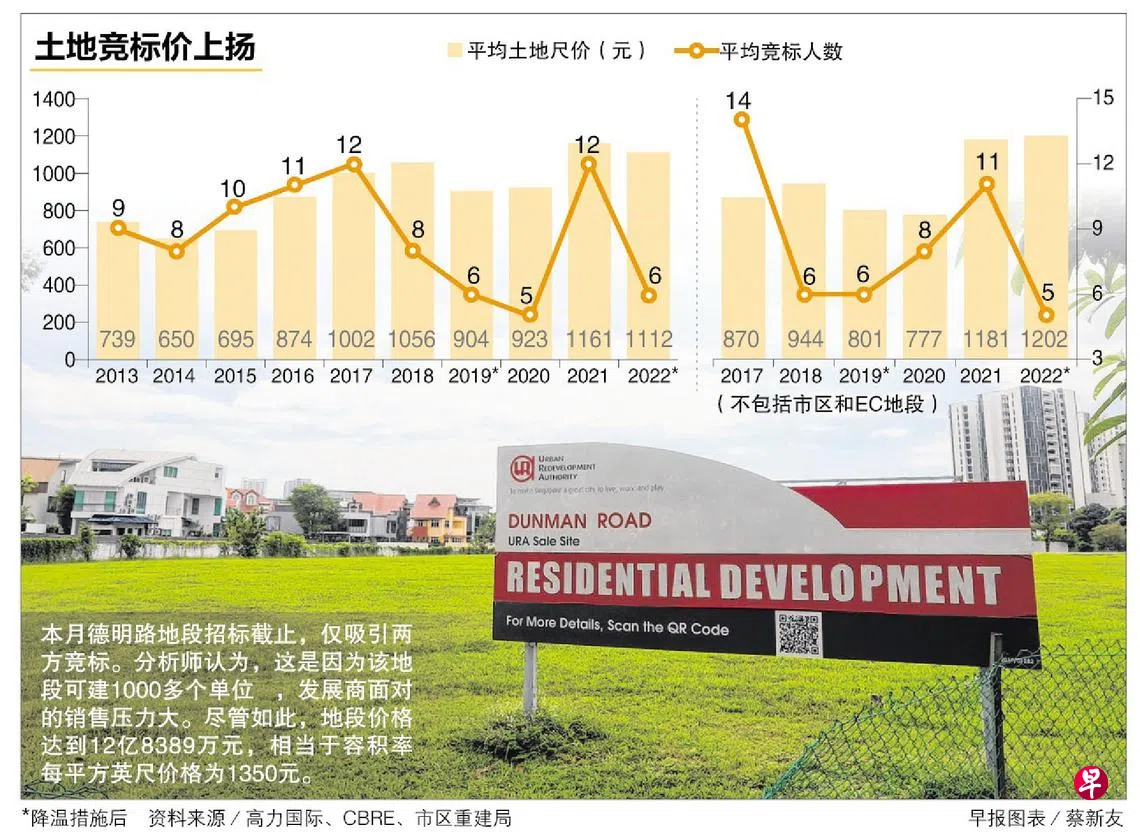 过去一年多,政府售地计划的平均土地价格较疫情前涨了五成,去年参与竞标平均人数更增加一倍,反映发展商标地的激烈情况。但分析师认为,在宏观经济逆风影响下,发展商下来标地料趋向谨慎,土地竞标价和私宅价格可能走软。