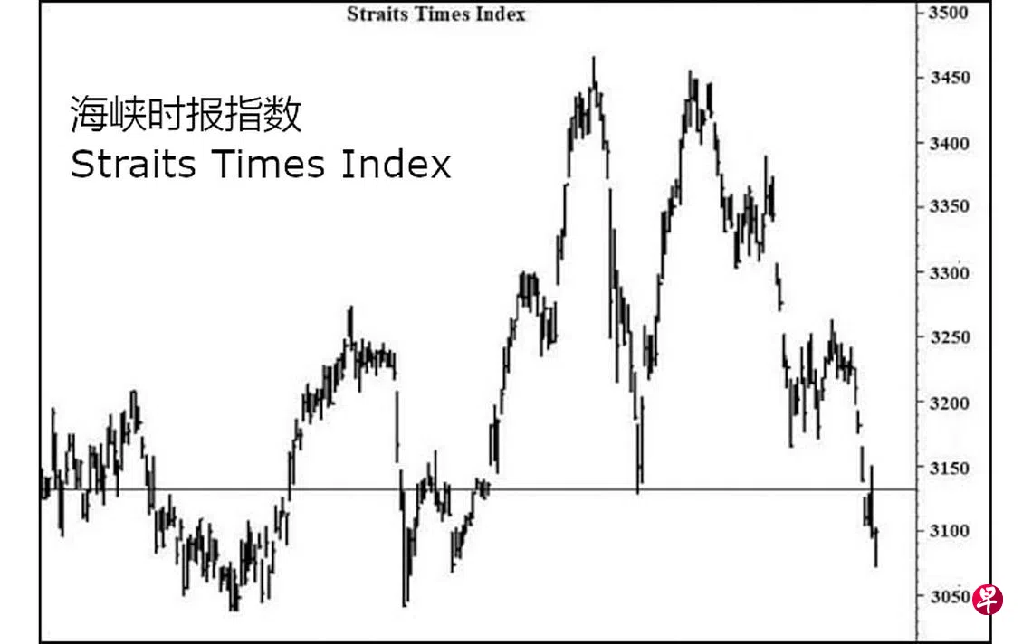 本栏于上周一(13日)曾预估指数短期回扯,充其量也只能填补介于3192.56点与3209.62点间留下缺口,过后当在本周或下周,因“动力”信号跌穿“中性线”而带领指数朝3038.65点的目标前进。当时指数为3181.73点左右。见报当天指数骤然下试3138.54点,由于跌势甚急,造成介于3165.54点与3181.73点间留下缺口。14日指数终于跌穿了本栏于今年5月23日所言及一个“双峰形”位于3128.06点的支撑点,直接下跌至3104.39点,同时又在介于3125.37点与3139.35点间留下缺口。15日指数仅略微下试3104.19点,16日指数一度回升至3150.11点,遂将上述第三个缺口填补;无奈仅是回光返照,过后竟以3097.43点闭市,与当天最低点的3094.57点相去不远。17日指数于开市后一度滑落至3072.34点,进一步的朝上述位于3038.65点的基本目标前进。由于指数每周一杆图中的“动力”信号已于上周五闭市时穿下“中性线”,而下跌至负号界域的0.01836处。估计短期回扯,股价或尝试填补上述第二个缺口后,重返跌势,并在跌穿3023.95的支撑点时迅速滑落。