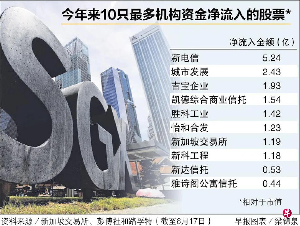 新加坡交易所的市场报告指出,约半数在新交所成交的股票今年以来获得机构资金净流入,其余的股票则出现机构资金净流出。其中,本地的银行股、科技股和房地产投资信托今年以来出现最多机构资金净流出。