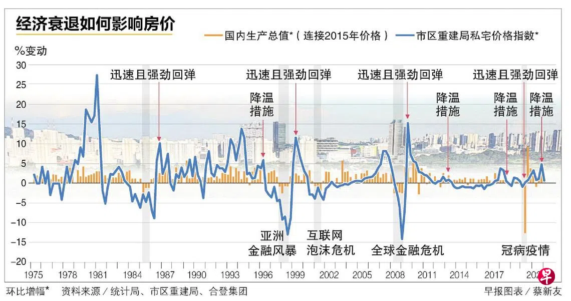 根据合登集团(Huttons Asia)最新发布的一份“经济衰退如何影响房价”研究报告,本地楼市具韧性,在我国2020年最近一次的经济萎缩时,国内生产总值(GDP)连续两个季度下跌,但房价却相对坚挺,仅在第一季下跌1%,并在第二季经济复苏前就回升了0.3%,表现领先于经济。
